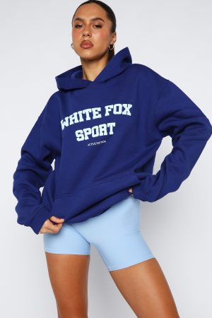 Your hoodie rotation just got cuter! Introducing the Winning Team Oversized Hoodie in Electric Blue. Designed with a cozy hood and slouched shoulders. it features long sleeves with ribbed cuffs and a relaxed. oversized silhouette. The front is finished with a sporty puff‑print White Fox text and a convenient large pocket—ideal for keeping your hands warm or holding your essentials. Pair with the matching Radiate High Waisted Shorts.