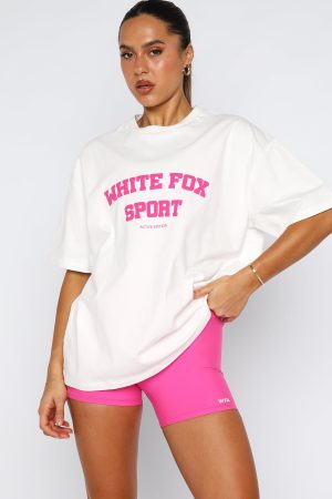 Be the best of the best in our Winning Team Oversized Tee in White/Bubblegum! Features a classic crew neckline. slouched shoulders. short sleeves. oversized silhouette and puff print White Fox text on centre front. Style with the matching Radiate High Waisted Shorts and your fav sneakers.