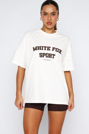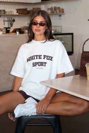 Be the best of the best in our Winning Team Oversized Tee in White/Chocolate! Features a classic crew neckline. slouched shoulders. short sleeves. oversized silhouette and puff print White Fox text on centre front. Style with the matching Keep Up High Waisted Shorts 4 and your fav sneakers.