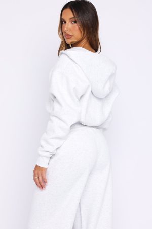 Wishing For It Cropped Cinched Zip Front Hoodie Grey Marle