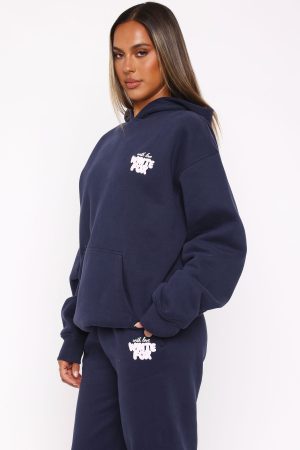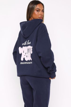 Stay seriously comfy in new. With Love 8.5! The With Love Always Oversized Hoodie Navy is an oversized fit and features elasticated ribbed cuffs & hem. hood. soft fleeced fabric for extra comfort and a printed logo front side and centre back. Bundle up and complete the set with the With Love Sweatpants in Navy for a look worthy of your night in.