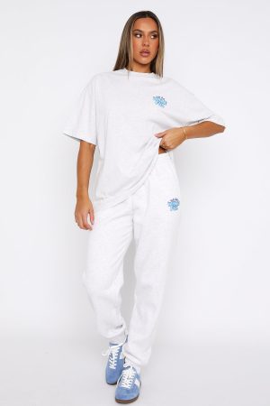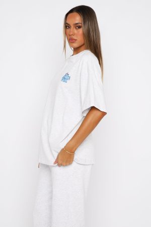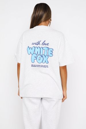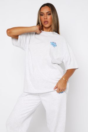 The With Love Always Oversized Tee Grey Marle is an easy. wear-everywhere tee! It is an oversized fit with slouch shoulders. round neckline. and a printed logo side front and centre back. We love this paired with the With Love Sweatpants!