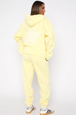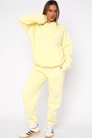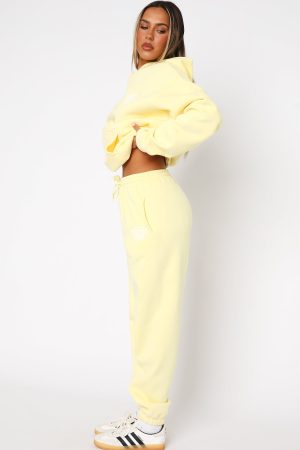 The With Love Always Sweatpants Lemon features a high elasticated drawstring waistband. elasticated ankles. side pockets. soft fleece fabric for extra comfort and puff print logo on side of leg. You can complete the tracksuit with the matching With Love Always Hoodie for the perfect off-duty look.