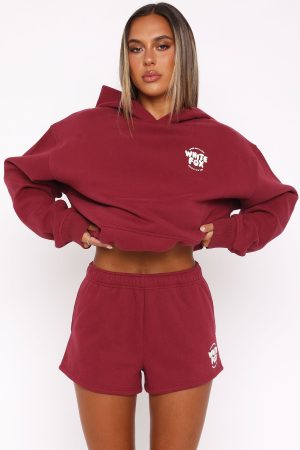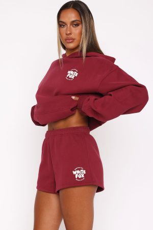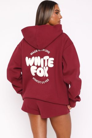 The With Love For You Lounge Shorts Burgundy are made with a touch of romance. and a whole lot of coziness! Featuring a loose relaxed fit with an elasticated high waistband with drawstring. side pockets. soft fleece fabric for extra comfort and print logo front side. Team with the With Love For You Oversized Hoodie Burgundy for the cutest matching moment!