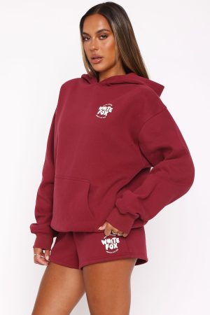 Stay seriously comfy in new. With Love 8.5! Turn up the heat this winter season in the With Love For You Oversized Hoodie Burgundy. Features an oversized fit and features elasticated ribbed cuffs & hem. hood. soft fleeced fabric for extra comfort and a puff print logo side front and centre back. Complete the look with the matching With Love For You Lounge Shorts Burgundy.