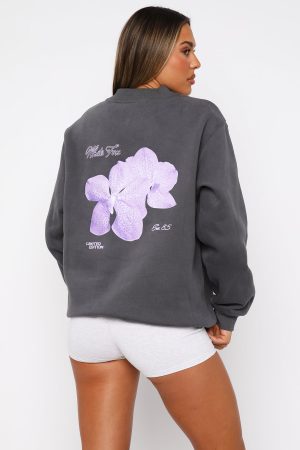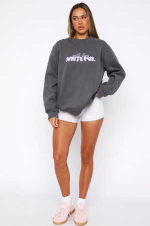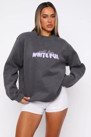 Switch up your stay at home look with the With Love Forever Oversized Sweater Volcanic. This oversized sweatshirt has a high scooped neckline. ribbed cuffs. hem and neckline. super soft fleece lining and puff print logo front centre and printed at centre back. Complete the look with the With Love Lounge Shorts and sneakers for the perfect cute and cosy look!