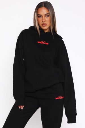 Stay seriously comfy in new. With Love 8.5! The With Love Always Oversized Hoodie Black is an oversized fit and features elasticated ribbed cuffs & hem. hood. soft fleeced fabric for extra comfort and a puff print logo front side and centre back. Bundle up and complete the set with the matching With Love In The Moment Sweatpants Black for a look worthy of your night in.