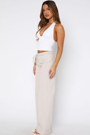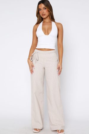 Get ready to strut your stuff in the Won’t Look Back Pants in Beige! Features a thick waistband with fabric belt detailing self tied at side front. lined and invisible zipper with hook and eye closure on side. These cute pants look stunning paired with a basic tank and sandals for the perfect summer days fit!