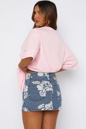 The denim look has us hooked! The Won’t Stop Searching Denim Mini Skirt in Flower Print features a front button and zip closure. belt loops. 5 pocket design. mini length. unlined. denim material and WF logo detailing. Pair with your favourite basic top and sandals for a cute brunch fit!
