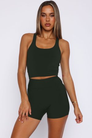 Your next sweat session is calling out for Work It Out Active Tank In Forest. Features a scoop neckline. thick straps. fitted design. lined. removable padding with inbuilt crop and custom patch detail. Pair with one of the matching Leggings or Shorts in Forest for a look we love.
