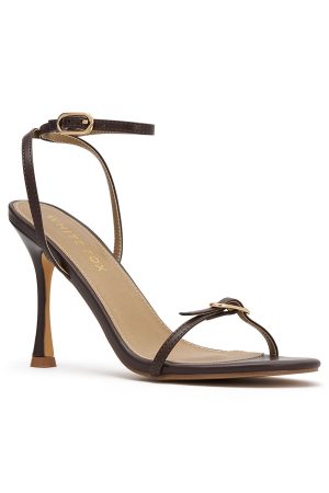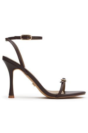 Dance all night in the Zana Heels in Chocolate! These sleek beauties feature an open round toe. gold‑hardware buckle straps. a secure ankle strap with buckle closure. and a slender heel. Pair them with shimmering separates and layered gold jewellery for the ultimate birthday‑girl glam.