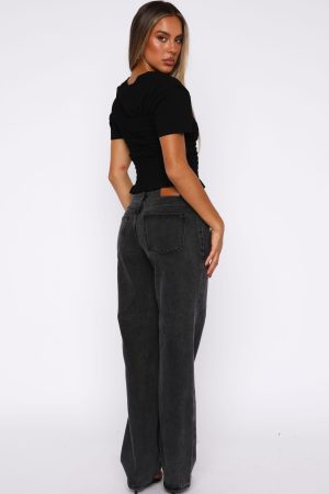 From weekend casual to after dark. our Zara Mid Rise Straight Leg Jeans in Black Acid have you covered! Featuring a mid rise fit. straight leg design. belt loops. 5 pocket design. front zipper and button closure and WF logo detailing side back. Style with bodysuit and mules for a chic look!