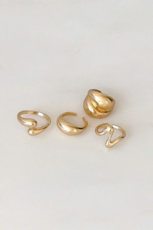 Stack up summer style with the Zyaire Ring Set Gold. This set includes four bold gold rings each boasting a unique thick and curved design that adds texture and dimension to your fingers. Pair with a matching bikini and sunnies to complete your beach‑ready outfit with effortless glam.